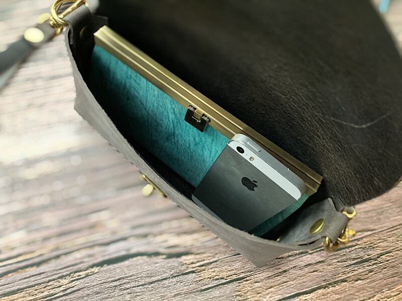 留め金具はレトロな捻り金具を使用。他の金具は全て真鍮の無垢材を使用しています。
