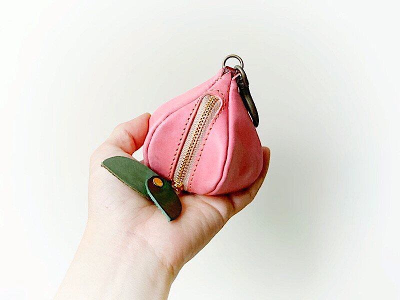 【本物の桃のようなセミマットな手触り。桃のカタチのミニポーチです】