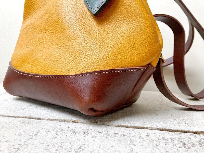 エイジング(経年変化)の魅力が味わえる、がまぐち式ミニリュックです。