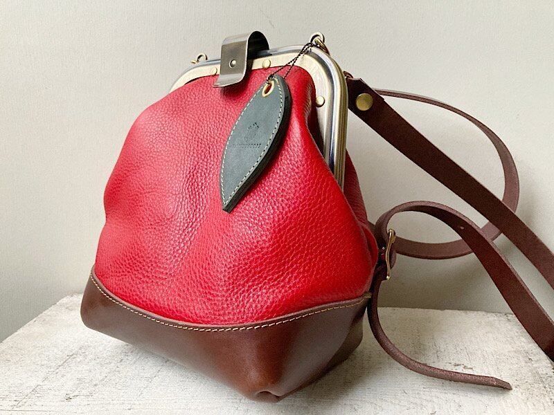 【イチゴみたいなカラーとシルエット。スカーレット×ビターブラウンののがまぐちミニリュックできました】