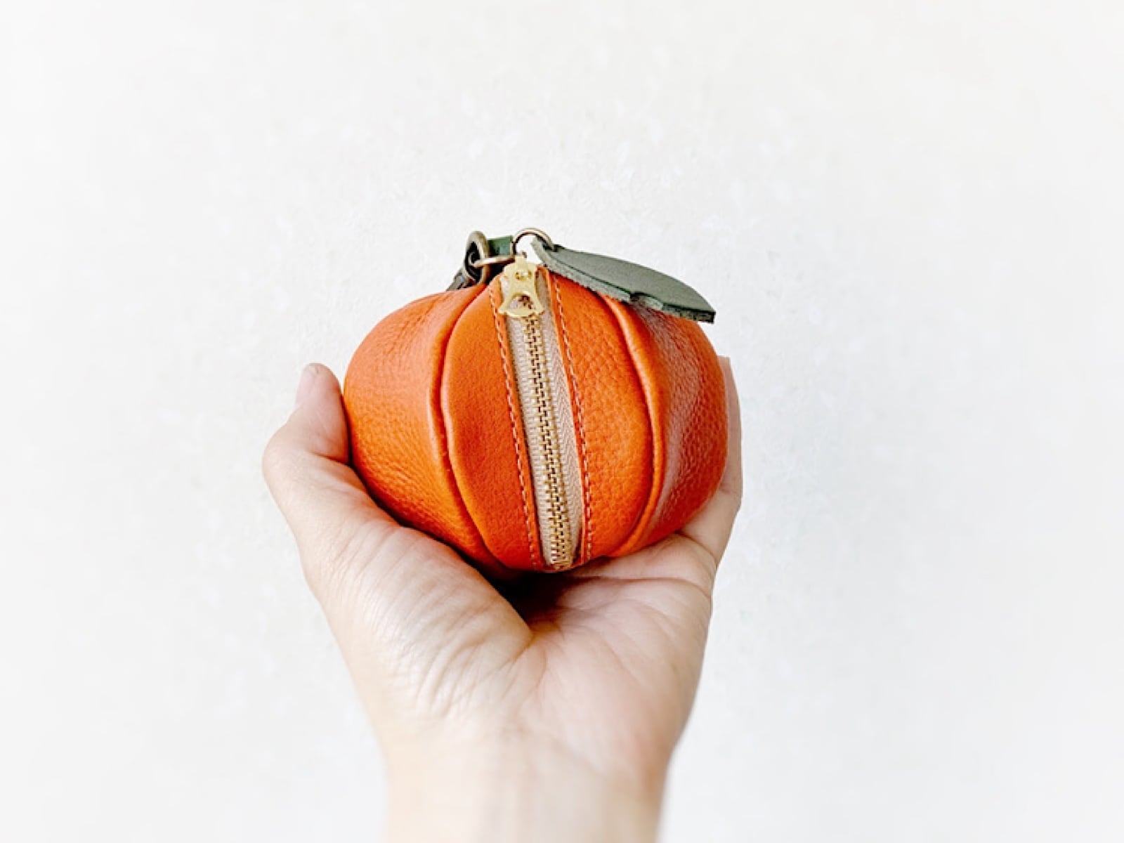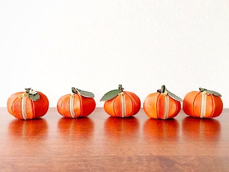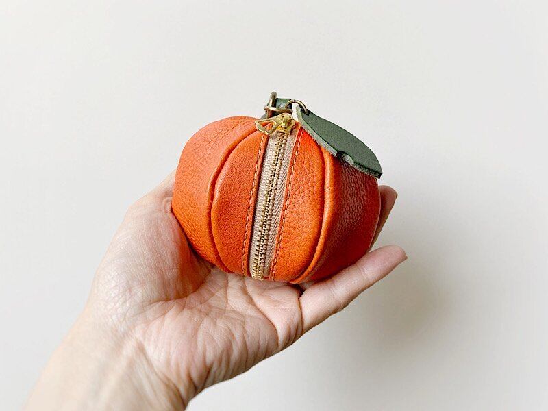瑞々しい果実感。みかん(オレンジ)を模したミニポーチを作りました。